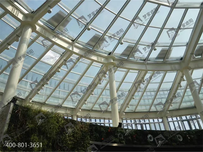 产品介绍:FTS电动天棚帘系统是种专为大面积采光顶而设置的织物遮阳装置。该电动遮阳系统在电子盒的控制下实现电机的正转和反转来收放面料以达到遮阳的目的。